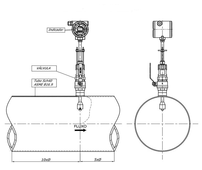 Acoplado diretamente a tubulação do processo.